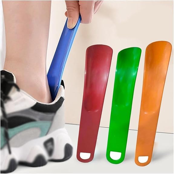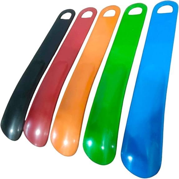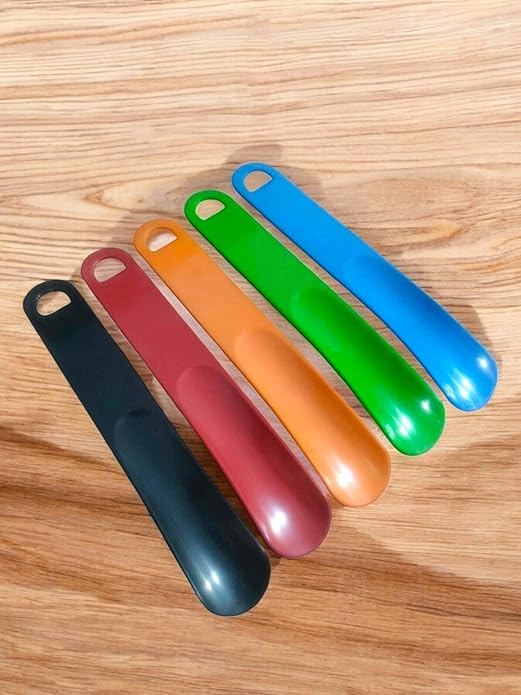 Generic - بوق احذية بلاستيكي، رافعة احذية بمقبض طويل 22 سم، متين على شكل ملعقة يساعد على ارتداء الاحذية للاطفال والرجال والنساء، متعدد الالوان، قطعة واحدة