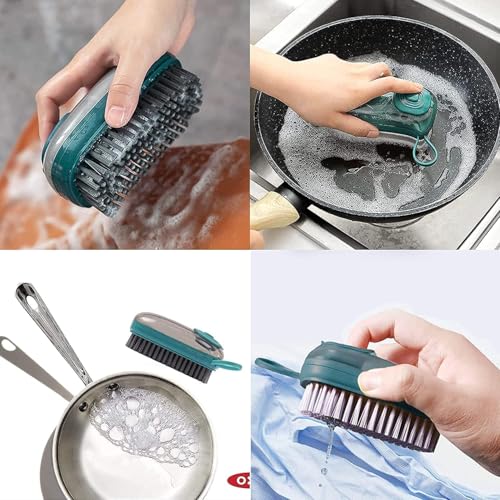 - 【NO REPLACEMENT】This dispenser brush can effectively clean the dirt from all dishes and clothes, suitable for kitchen, living room and bathroom. Its bristles, sponge and fiber heads give you a gentle, safe clean.
