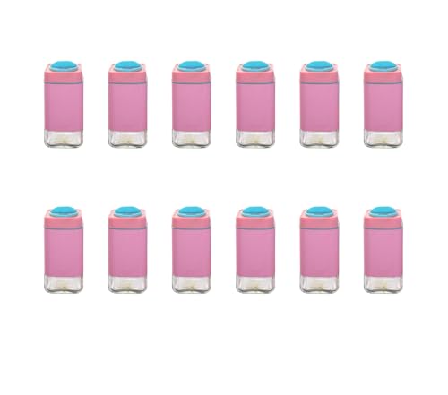 Generic - طقم برطمانات توابل بلاستيك مع حامل، 12 قطعة - بينك