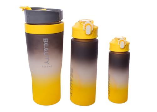 Generic - Plastic Sports Water Bottle Set, 3 Pieces - Black Yellow