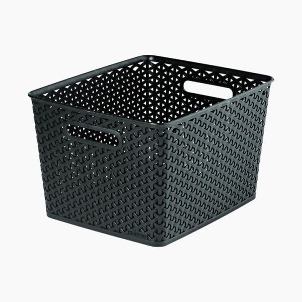 Generic - Plastic Storage Basket with Woven Pattern, Large Size, Black