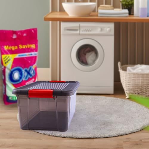 - SECURE LOCKING SYSTEM: Features robust locking handles with red accents that snap firmly into place, ensuring the lid stays securely attached during transport and storage