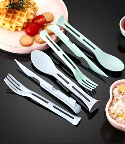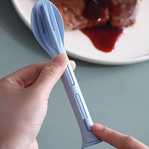 - This plastic cutlery set includes a detachable fork and spoon, along with a three-piece dinnerware set. The travel-friendly design has a sturdy and durable construction, which ensures that it is environmentally friendly. Made of safe plastic, it is suitable for contact with any food, with a smooth finish and a thick base for stable placement during meals.
