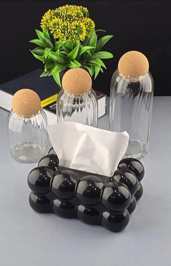 Generic - Plastic Tissue Box With Bubbles Design With Elegant Decoration - Black