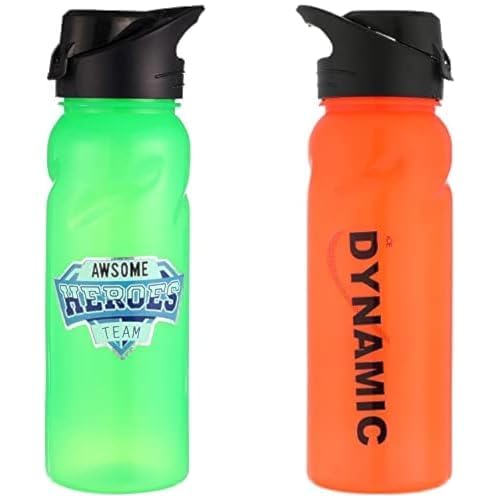 Generic - زجاجة مياه بلاستيكية بغطاء سعة 750 مل - اخضر واسود + زجاجة مياه بلاستيكية بغطاء سعة 750 مل - برتقالي واسود