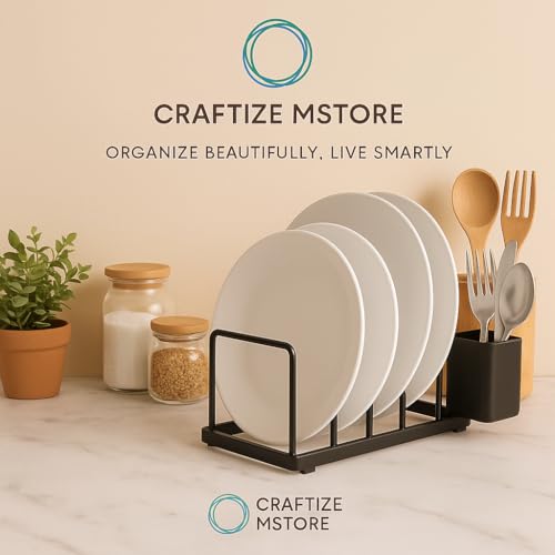 Craftize Mstore - Plate Rack | Dish Rack | Plate Stand | Dish Stand | Lid Holder Utensil Rack for Kitchen - 5 Sections