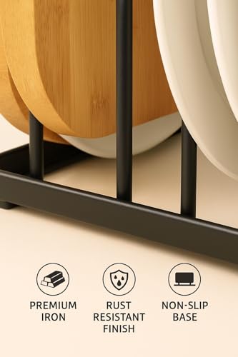 - 【Premium Material】Made from durable iron, wrought iron coating treatment, securely welded. Can protect stored pot lids or cutting board from being damage and dirty.