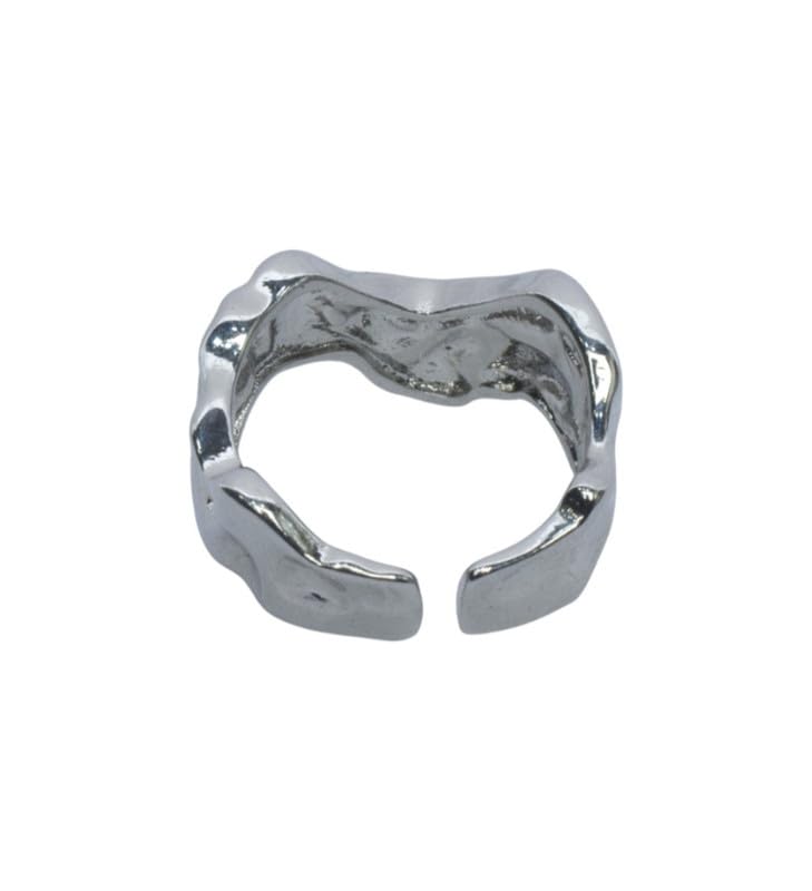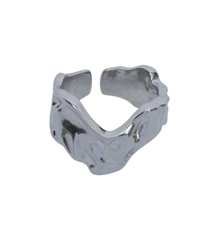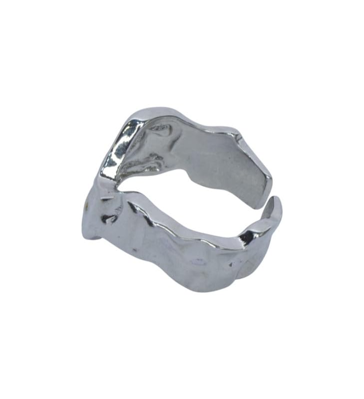 Generic - Platinum Adjustable Molten Textured Statement Ring for Women, Free Size - Silver