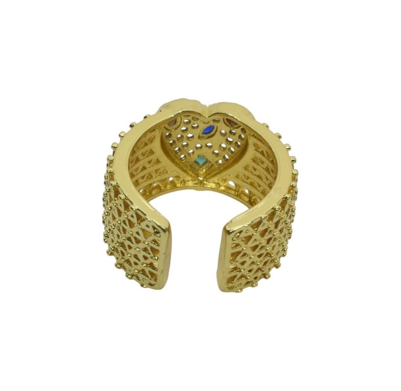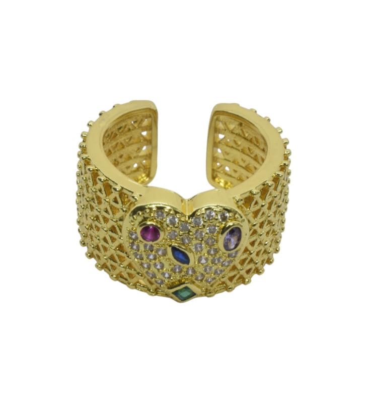 Generic - خاتم بلاتينيوم عريض قابل للتعديل على شكل قلب مع احجار ملونة متعددة مقاس واحد للنساء، مقاس واحد - لون ذهبي