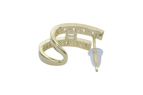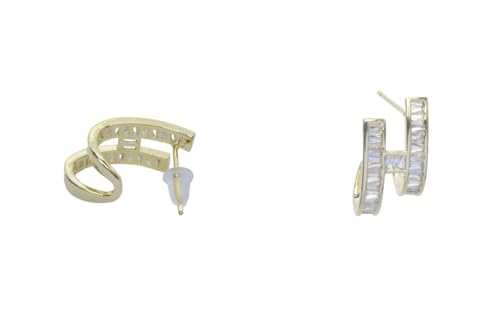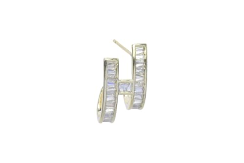 Generic - Platinum Baguette Stone Double-Bar Stud Earrings for Women - Gold