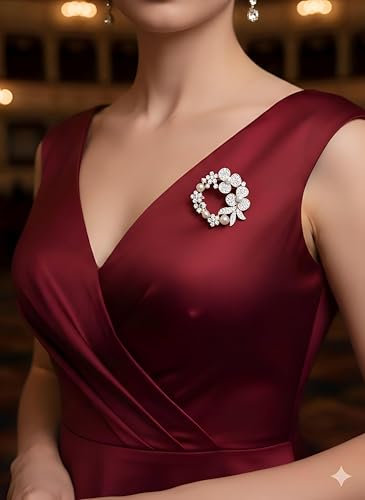 Generic - بروش بلاتينيوم - مجموعة بروش مصنوعة يدويًا من الفضة الاسترلينية مع كريستالات زركونيا مكعب لامعة، تتميز بتصميم زهور أنيق مثالي لحفلات الزفاف أو الحفلات أو النمط اليومي الأنيق.