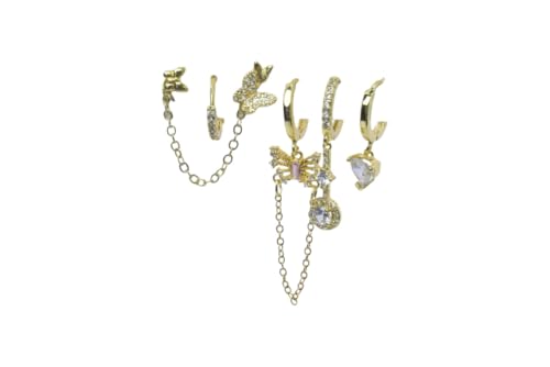 Generic - Platinum Butterfly & Clear Stone Multi-Piece Earrings Set for Women - Gold