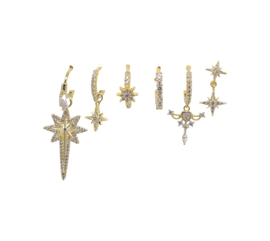 Generic - طقم اقراط سيليستيال ايكليبتيك للنساء من بلاتينيوم، 6 قطع