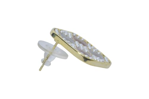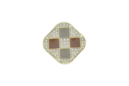 Generic - Platinum Checkerboard and Pearl Inlay Rhombus Stud Earrings for Women - Gold