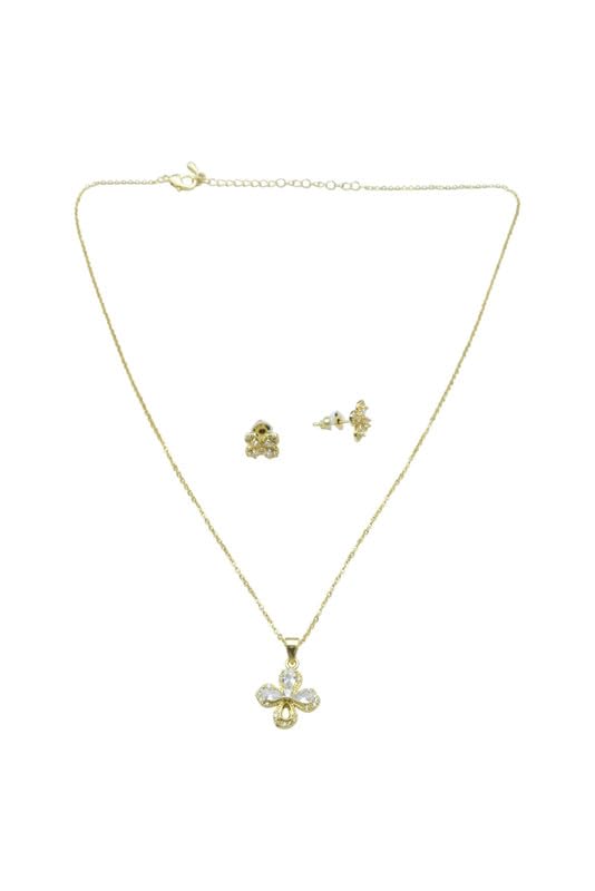 Generic - طقم مجوهرات بلاتينيوم كلوفر للنساء، عقد واقراط بريمة مرصعة باحجار شفافة - ذهبي