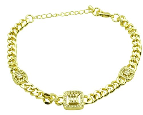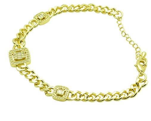 Generic - Platinum Cuban Link Bracelet with Pave Baguette Stations for Women – Gold