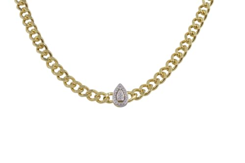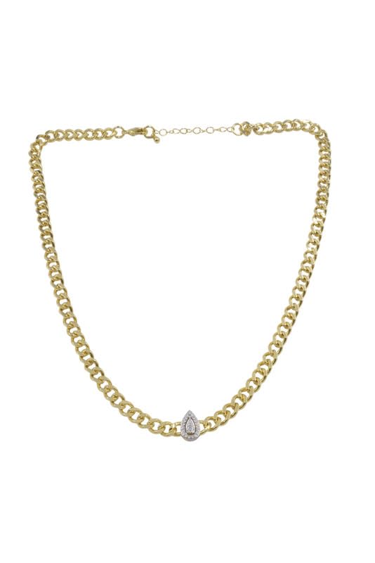Generic - Platinum Cuban Link Chain Necklace with Teardrop Pave Station for Women – Gold