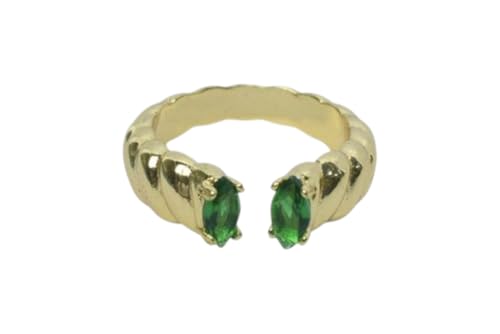 Generic - Platinum Cuff Ring With Oval Stones For Women, Free Size - Gold