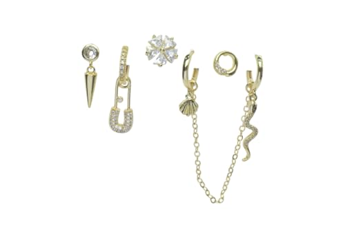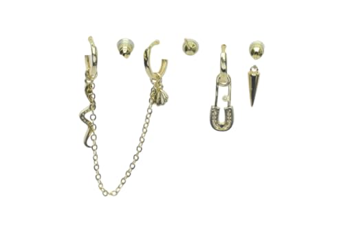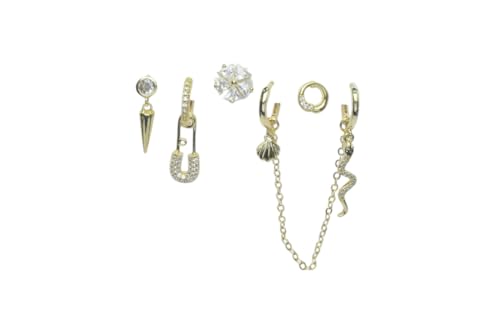 Generic - Platinum Edgy & Clear Gemstone Multi-Piece Earrings Set for Women - Gold