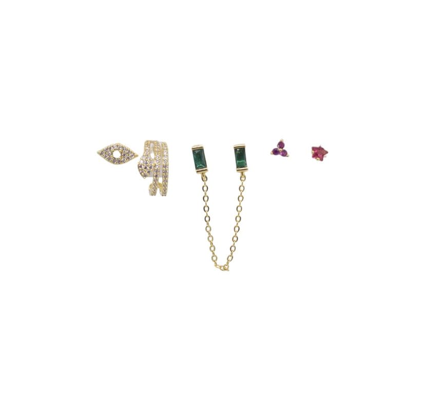 Generic - Platinum Evil Eye and Geometric Stud Earring Set with Colored Stones for Women, 6 Pieces - Gold