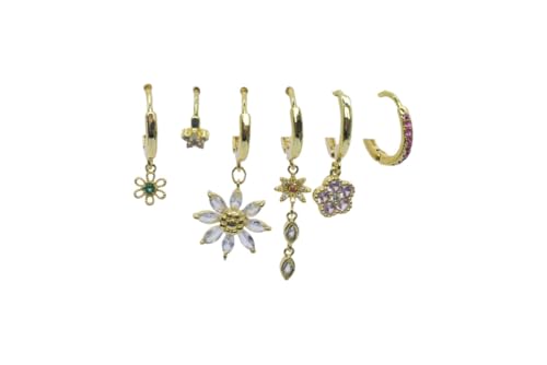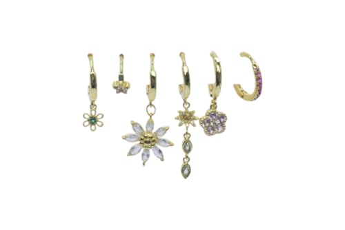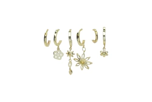 Generic - طقم اقراط بلاتينيوم فلورال متعددة القطع للنساء - ذهبي