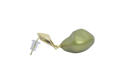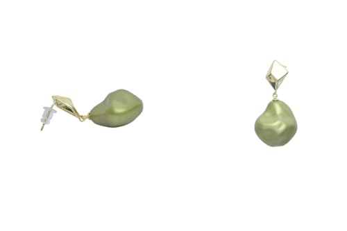 Generic - Platinum Gold-Toned Geometric Stud Earrings with Irregular Green Nugget Drops for Women - Olive