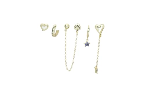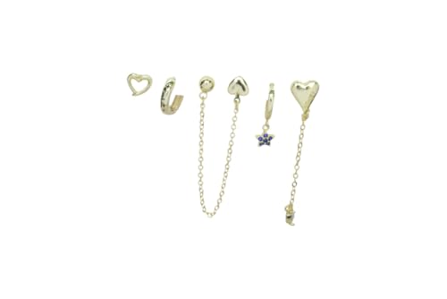 Generic - Platinum Heart & Chain Multi-Piece Earrings Set for Women - Gold