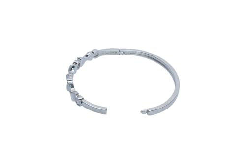 Generic - Platinum Hinged Bangle with Alternating Clear & Geometric Stones for Women - Silver