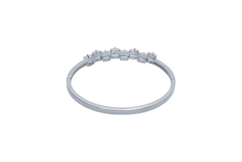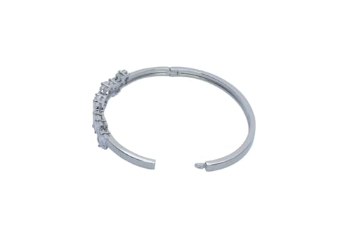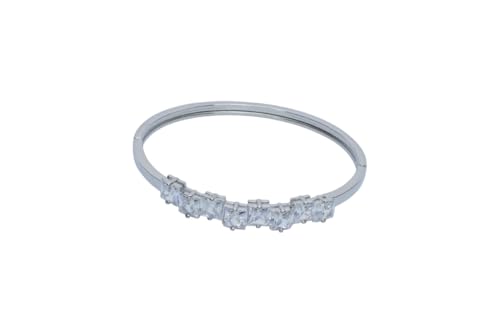 Generic - Platinum Hinged Bangle with Princess-Cut Clear Stones for Women - Silver