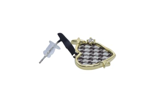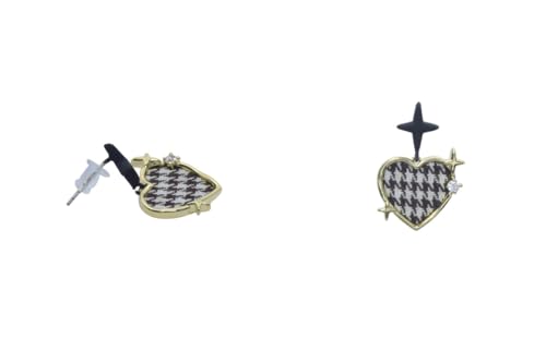 Generic - Platinum Houndstooth Heart Drop Earrings with Star Stud for Women - Gold Black