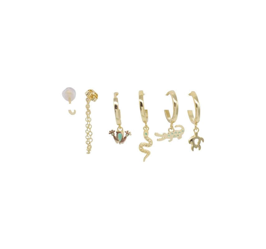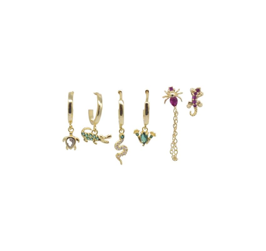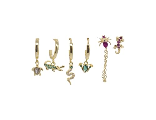 Generic - Platinum Huggie Earring Set with Reptile and Insect Charms for Women, 6 Pieces - Gold