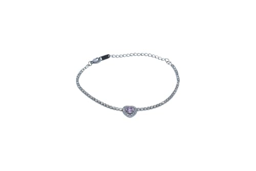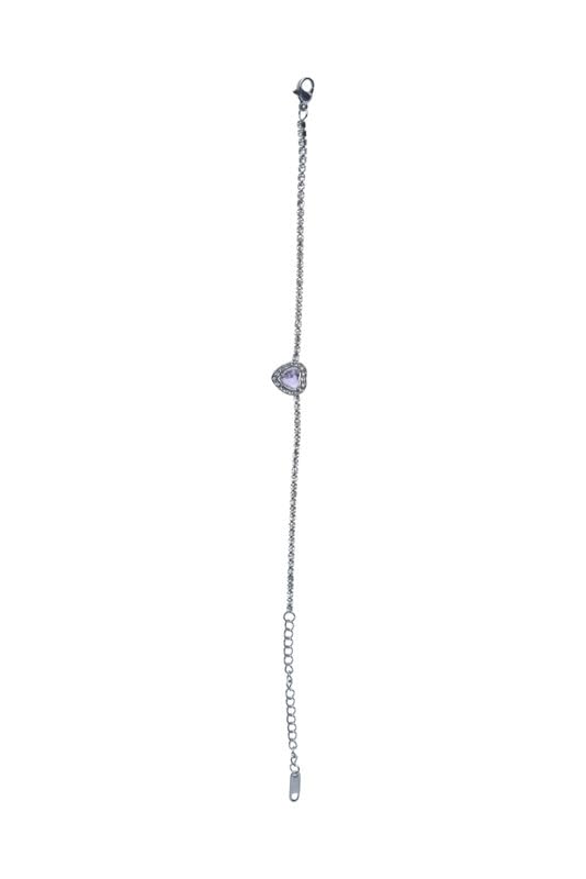 Generic - Platinum Line Bracelet With Lilac Heart Charm And Cubic Zirconia Halo For Women