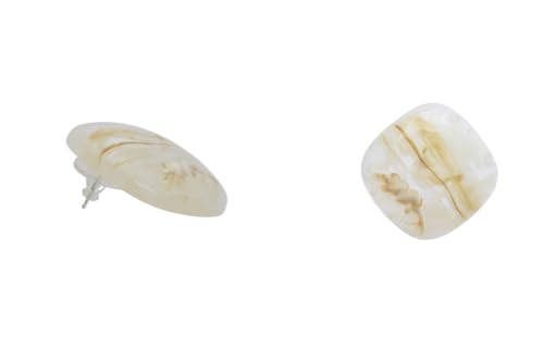Generic - Platinum Marbled Square Stud Earrings For Women - Beige Brown