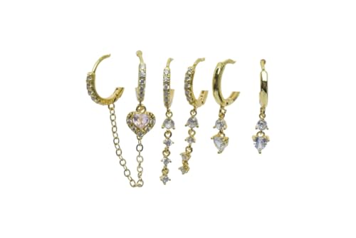 Generic - Platinum Pink Heart & Clear Stone Multi-Piece Earrings Set for Women - Gold