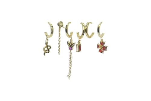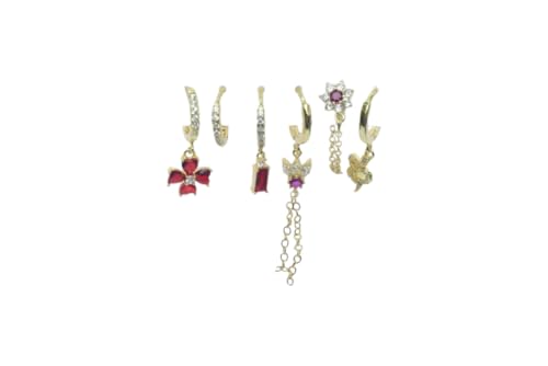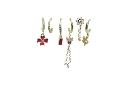 Generic - طقم اقراط متعددة القطع من البلاتين مرصعة باحجار كريمة حمراء وحجر شفاف للنساء - ذهبي