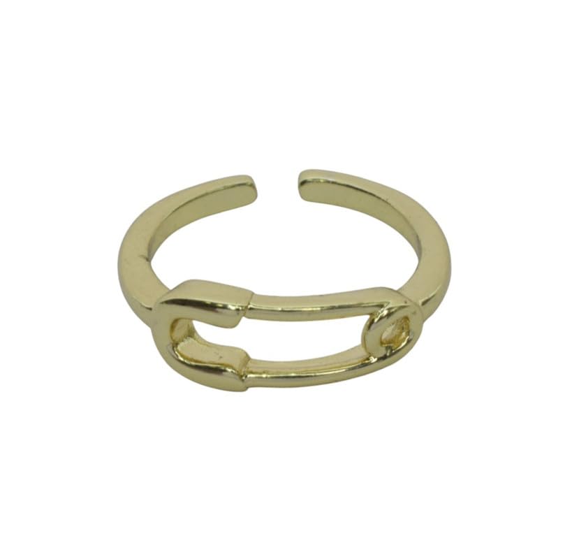 Generic - Platinum Safety Pin Adjustable Ring for Women, Free Size - Gold
