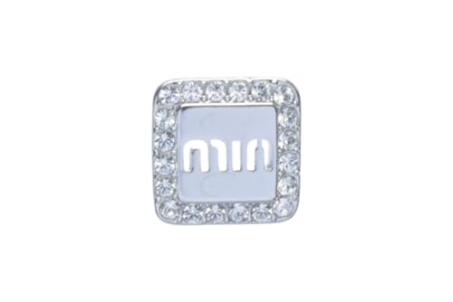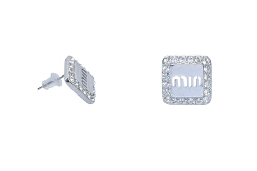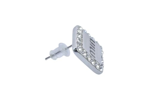 Generic - حلق بريمة مربع بلون فضي بلاتيني مع حواف كريستال وشعار مفرغ للنساء - فضي