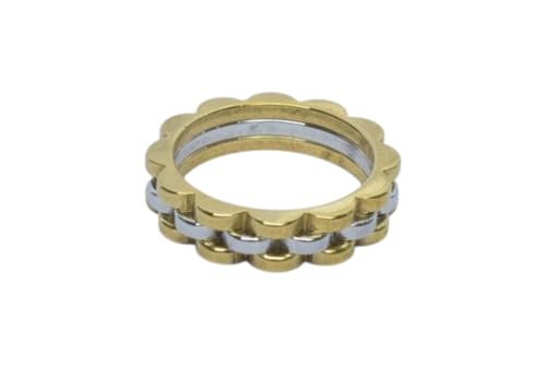 Generic - Platinum Two-Tone Gear-Edge Band Ring For Women - Gold