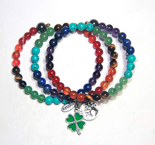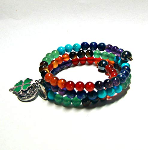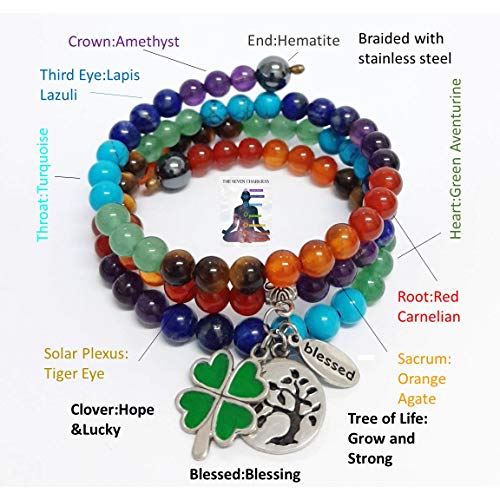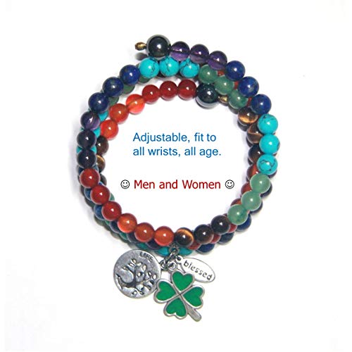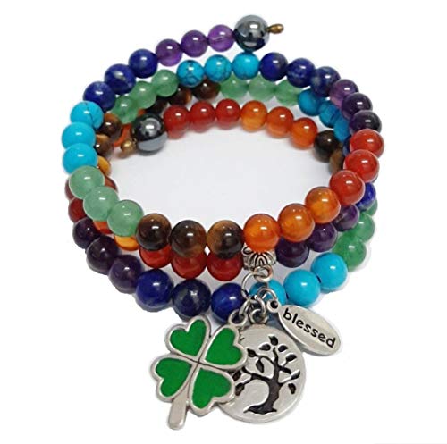 generic - Plethora 33 Charm Chakra Bracelet Unique and Fantastic Design Handicraft made of Natural Color Semi-Gemstones BLESSED with TREE OF LIFE and CLOVER for Healthy Prosperity Hope Lucky Men Women All Ages