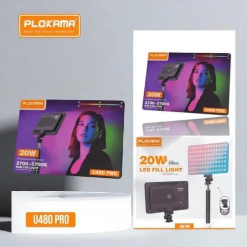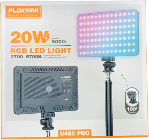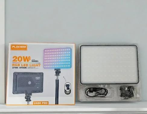 Generic - مصباح ليد محمول U480 برو 20 وات بإضاءة ار جي بي مدمجة للتصوير الفوتوغرافي، قابل لإعادة الشحن 5000 مللي امبير في الساعة والتعتيم من 2700 إلى 5700 كلفن لكاميرات DSLR والفيديو وشاحن نوع سي من بلوكاما