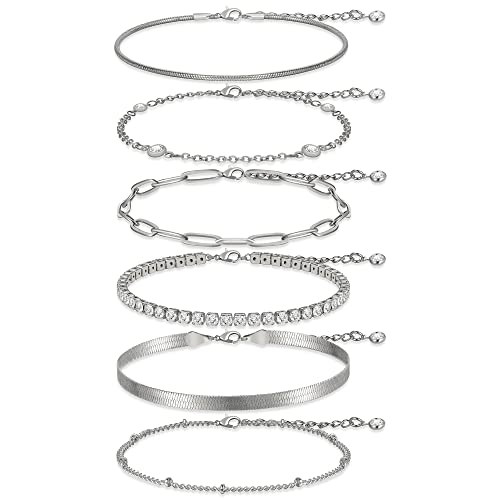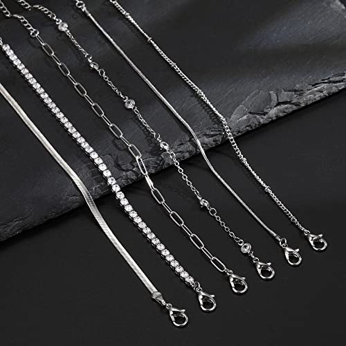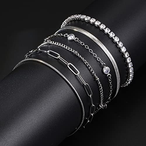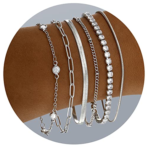 Pls Back - Gold Link Bracelets Sets for Women, 14K Gold Plated Dainty Classic Adjustable Paperclip Layered Bracelets, Fashion Simple Chain Tennis Bracelet with Zirconia, Jewelry Gifts 15.