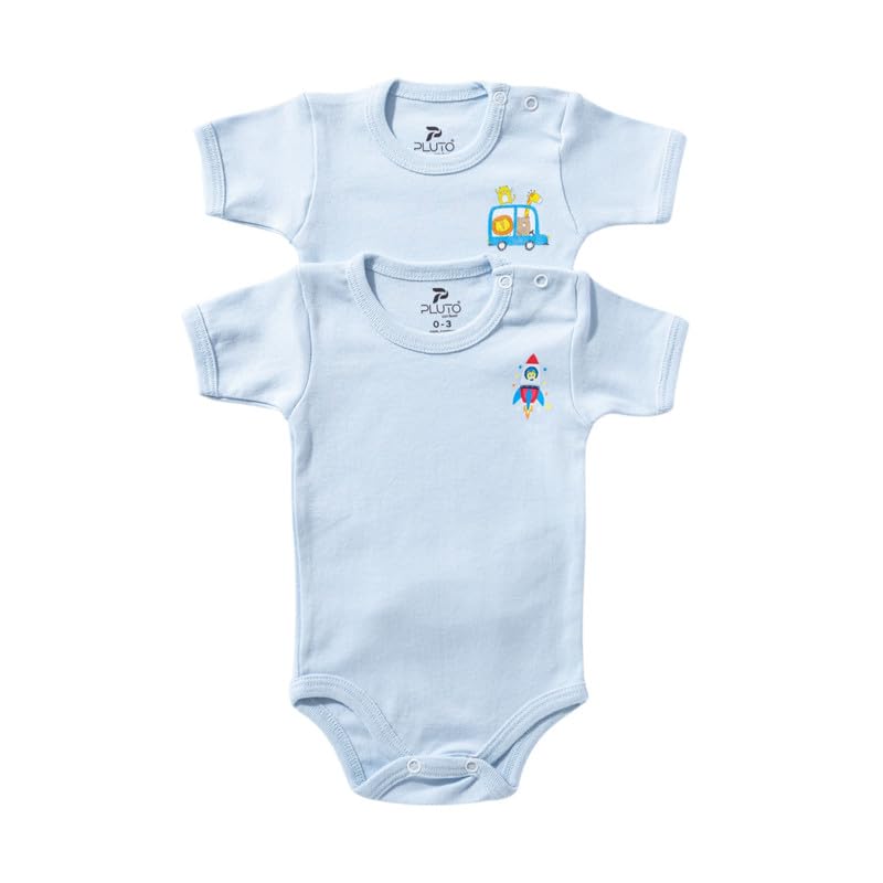 PLU2 Kids - PLU2 Cotton Half Sleeveless Bodysuit For Baby Boy Set, 2 Pieces - Baby Blue