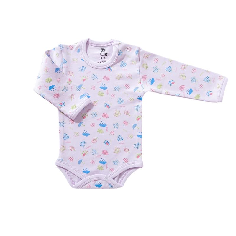 PLU2 Kids - سالوبيت بكباسين قطن طويل بدون اكمام مطبوع للبنات البيبي ال يو 2 - متعدد الالوان