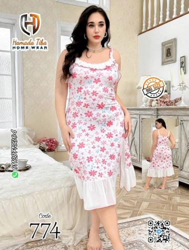 Generic - فستان نوم قطن مريح بنمط زهور للمقاسات الكبيرة
