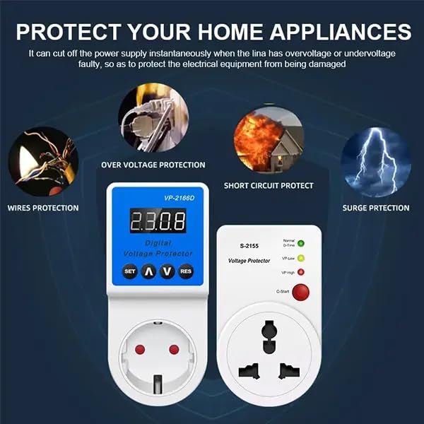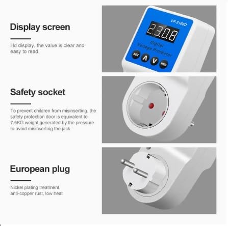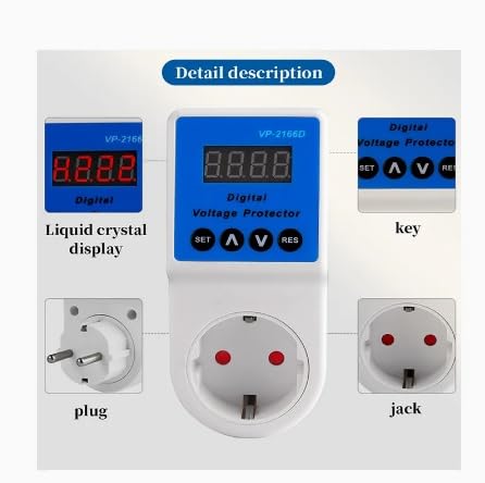 - Adjustable Display Features: Over voltage protection range 230-300V (Default: 260V), low voltage protection range 140-210V (Default:175V), speed recovery time 5-999s (Default:10S), voltage correction -20 to 20V