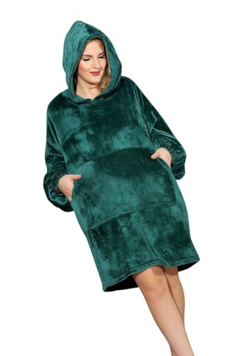 Generic - Plush Hooded Blanket Sweatshirt, Emerald Green Velvet, Oversized Wearable Blanket with Pockets