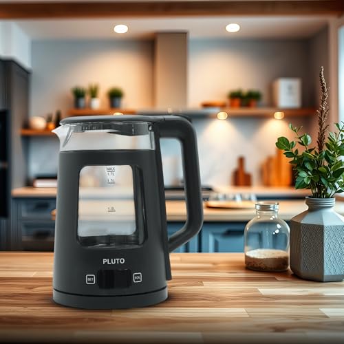 Pluto - غلاية كهربائية زجاجية 2200 وات مع طلاء من البولي كربونات، سعة 1.7 لتر، موديل PL-KE1722-GDD من بلوتو