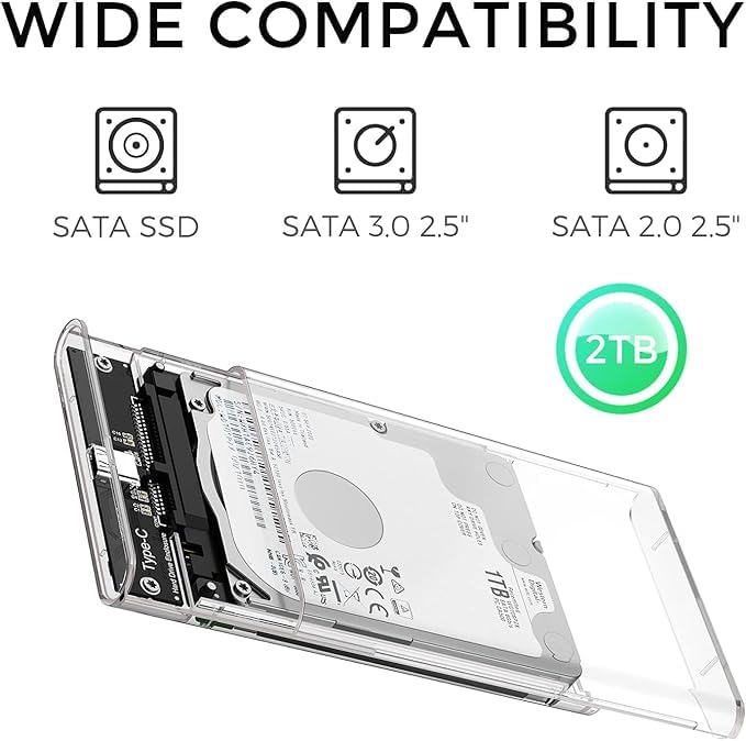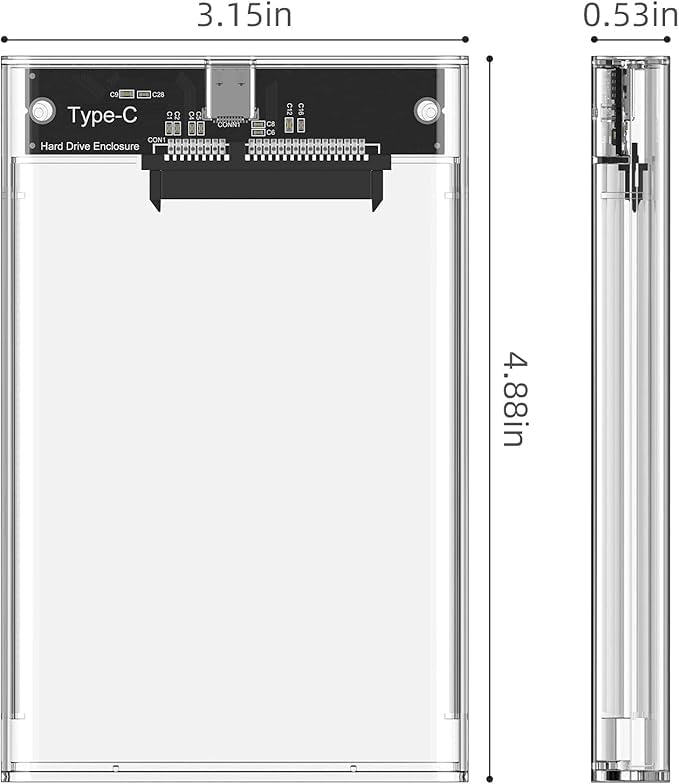 Generic - point 2.5 inch HDD Enclosure - External Hard Drive Enclosure - Type C SATA for HDD SSD - Tool-Free - Transparent