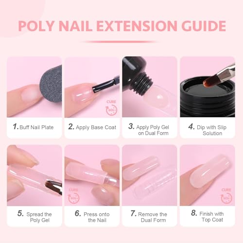 - EASY & QUICKLY DRY UNDER NAIL LAMP:The poly gel colors nails need curing by a nail lamp for 60-120 secs.Even beginners can easily do their own manicures by the detailed instructions on the listing and the package.You can use poly extension gel set with nail decorations to design your style.