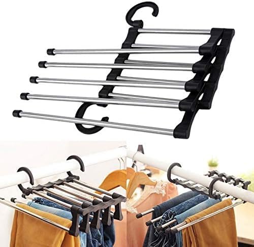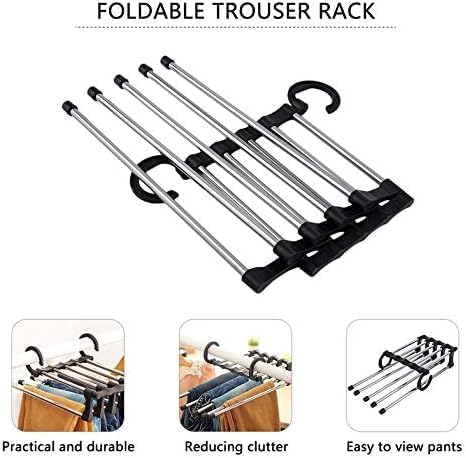 - Multilayer Design: 6 Layers Stainless Steel Pants Hanger Provides Plenty Of Storage For Trousers, Jeans, Pants In The Wardrobe